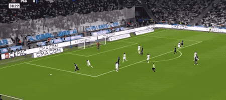 更多时间,巴黎圣日耳曼都在尝试突破马赛的层层封堵。第30分钟,克瓦拉兹赫利亚连续横向盘带后的射门,稍稍偏出。