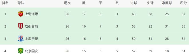 上轮联赛,成都蓉城客场1比1战平上海申花,周定洋“读秒”攻入绝平进球,成都蓉城在与上海海港同分的情况下,凭借双杀对手的相互战绩继续占据中超榜首。中超争冠进入到最白热化阶段,本轮之前成都蓉城和上海海港同积54分,上海申花51分紧随其后。最后五轮联赛,这三支球队都不敢有任何闪失。