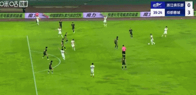 在0比3落后的情况下,浙江队也派出了替补边锋奥乌苏,后者登场不久就凭借个人能力将比分扳成1比3。上半场补时最后时刻,卡列洛又在门前接王钰栋的传中头球破门,将分差缩小到2比3。其实在卡列洛进球前,成都蓉城在补时阶段也曾连续获得必进球的机会,但罗慕洛、廖荣祥、周定洋的射门都被对方化解。