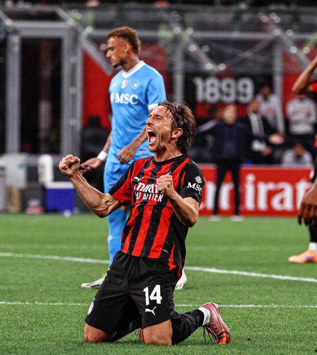 十人米兰随即开启防守模式,40岁的莫德里奇成为中场的重要屏障,补时阶段仍在奋力反抢指挥调度,用老兵的坚守诠释着职业精神。