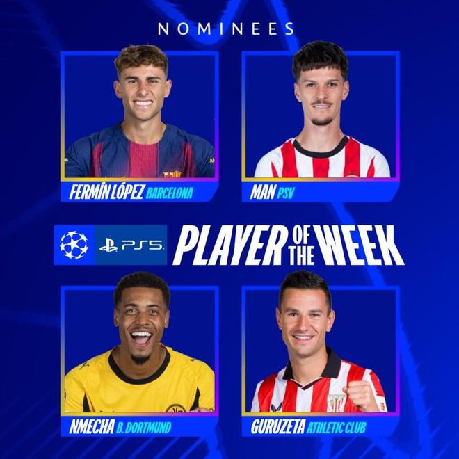 欧冠联赛阶段第三轮战罢,欧冠官方公布了本轮最佳球员候选名单,分别是费尔明、丹尼斯-曼、恩梅加和古鲁泽塔。